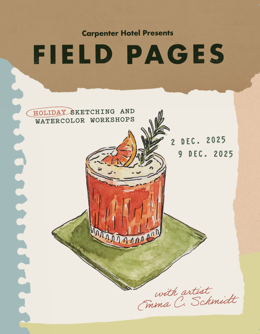 Join us this holiday season for sketching and watercolor workshops with Austin-based artist, Emma C. Schmidt. Enjoy delicious sips and bites from Carpenters Hall while learning the art of ink sketching and watercolor. All supplies included and no experience necessary.