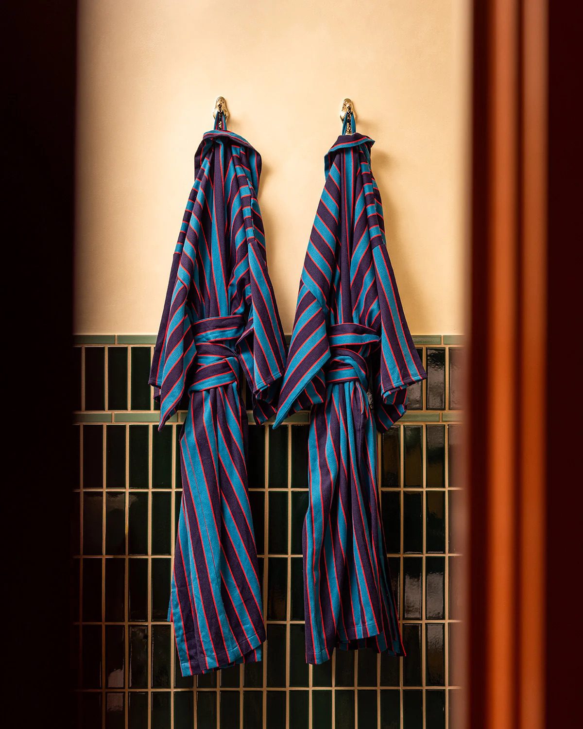 Our signature unisex robes are custom-made in India from 100% cotton and feature waist ties and pockets.