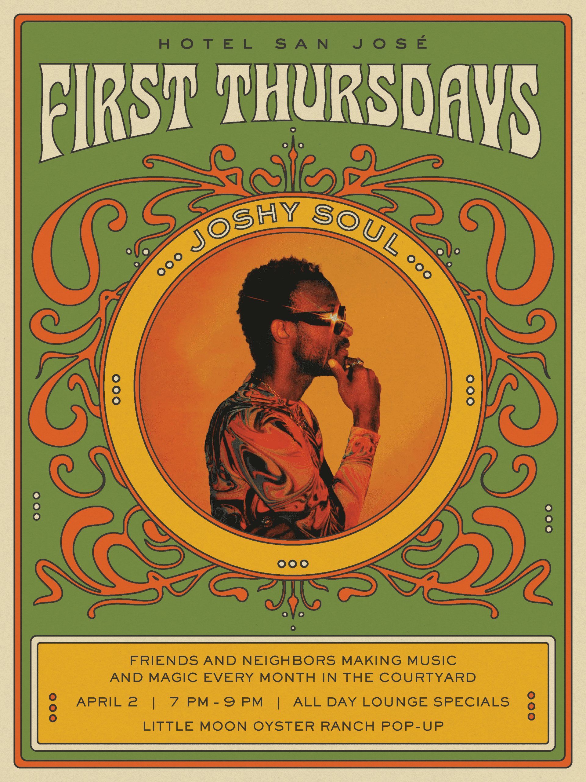- April 2: Joshy Soul with a pop-up from Little Moon Oyster Ranch