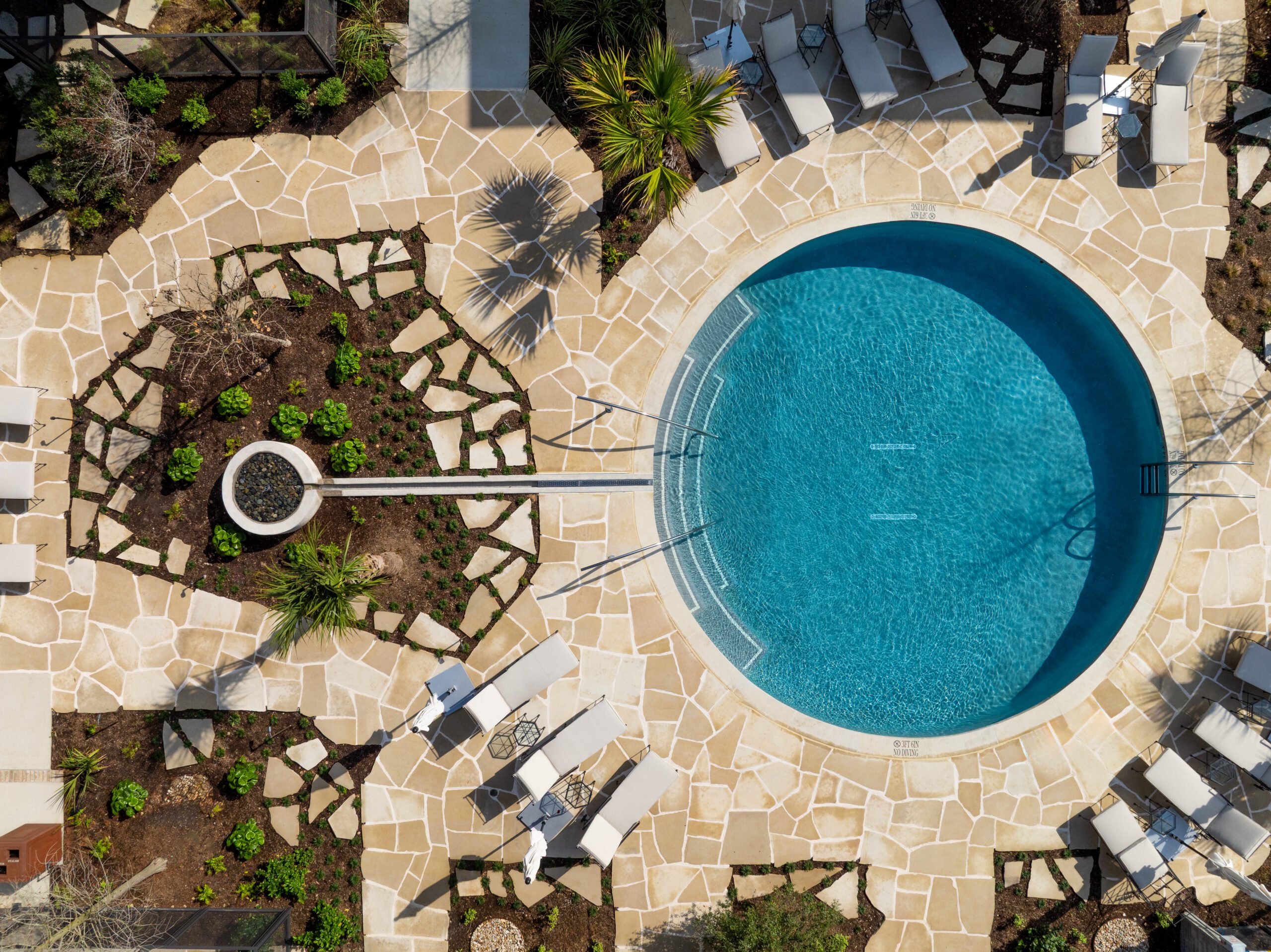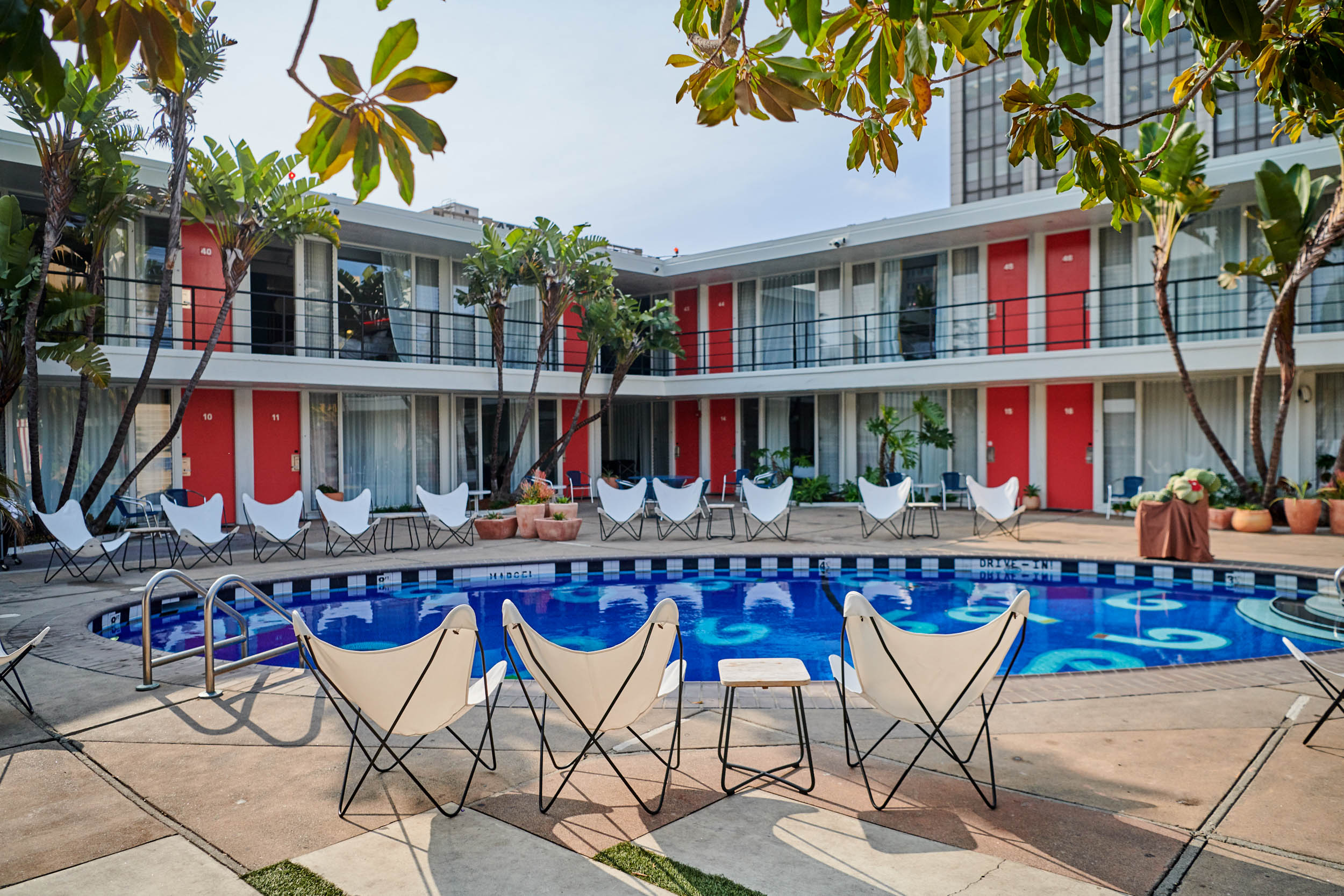 The Hotel San José pool—an oasis within an oasis—offers peace and quiet for long or short stays. Pull up the seat or go ahead and jump on in.